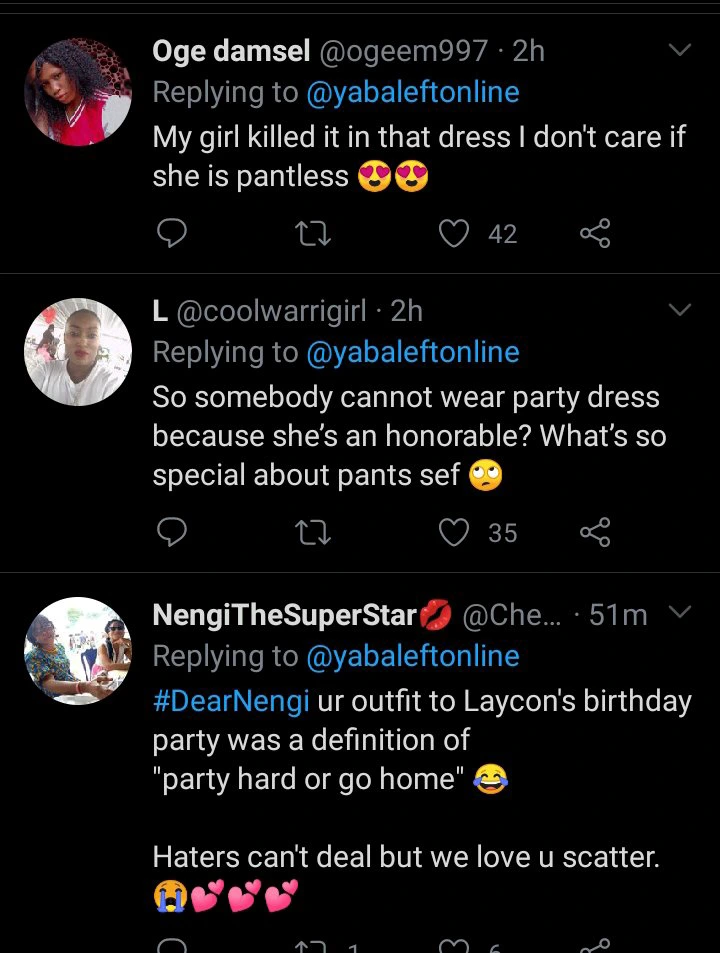 Laycon's birthday party was a success yesterday, however alot of fans has being dragging Nengi for the outfit she showed up with in the party yesterday, with some insulating that she was not supposed to dress like that since she was recently appointed as the special adviser to Bayelsa State Governor and as well the face of Bayelsa.